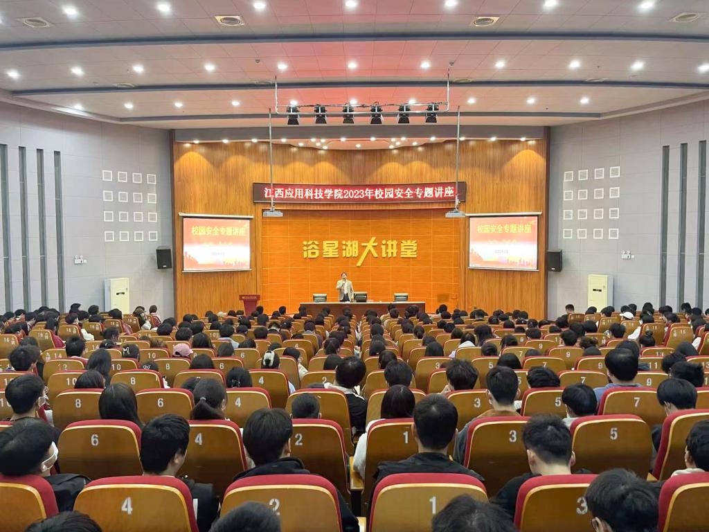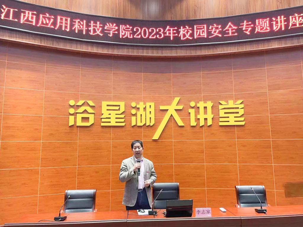 为了进一步加强我校学生的安全意识、提高防范能力,全面落实校园安全稳定工作,3月7日晚,江西应用科技学院在浴星湖大讲堂开展2023年校园安全专题讲座活动。本次专题活动由学校保卫处副处长李志家主讲,2022级的寝室长代表参加。