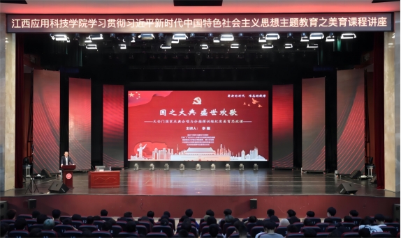 5月16日,江西应用科技学院在音乐厅召开学习贯彻习近平新时代中国特色社会主义思想主题教育之美育课程专题讲座。首都师范大学音乐学院李刚教授应邀作“国之大典 盛世欢歌-国家庆典合唱纪实”美育思政课。学校党委副书记江星出席活动,团委书记张荆、各分院党总支书记、音乐学院部分党员师生代表参加学习。讲座由音乐学院党总支书记杨力主持。