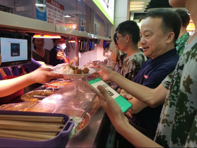 9月5日,校党委书记、政府督导专员彭迪云来到第一食堂,亲身体验学生用餐流程。他和同学们一起排队,在窗口打了一份饭菜,自己用手机扫码,花费9元。他走到同学们用餐的区域坐下,和同学们拉起了家常。同学们看到书记来到餐厅,纷纷围过来,向彭迪云请教学习方面和生活方面的问题。彭迪云亲切地询问大家,对学校环境感觉怎样?饭菜是否可口?了解到有些同学是外校今年专升本来校的,有考研计划,彭迪云勉励大家要好好利用学校良好的学习环境,努力学习,争取一次成功。