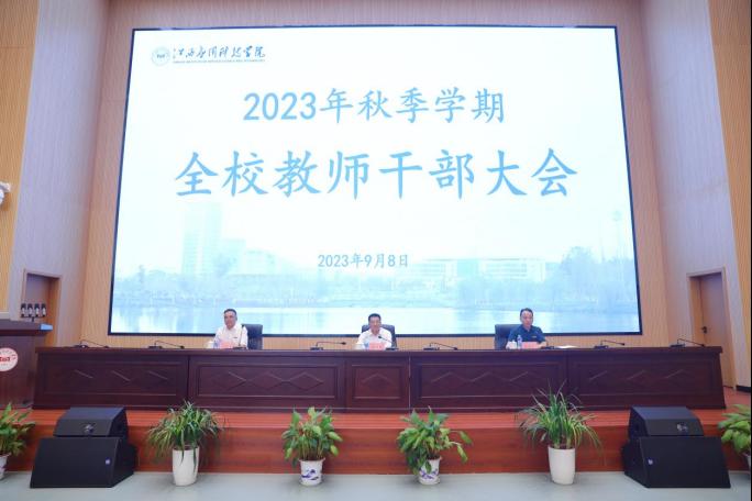为进一步统一思想,凝聚共识,9月8日下午,2023年全校教师干部大会在三元大厦二楼学术报告厅召开。学校董事长黄玉林,党委书记、政府督导专员彭迪云,校长江作军,执行董事长王立,常务副校长干甜,纪委书记江星,副校长胥懋云、房小珍、张敏、谢远健,校长助理曾昌盛出席大会。学校副高以上教师、正科及以上干部、教研室主任、教工党支部书记参加大会。会议由彭迪云主持。