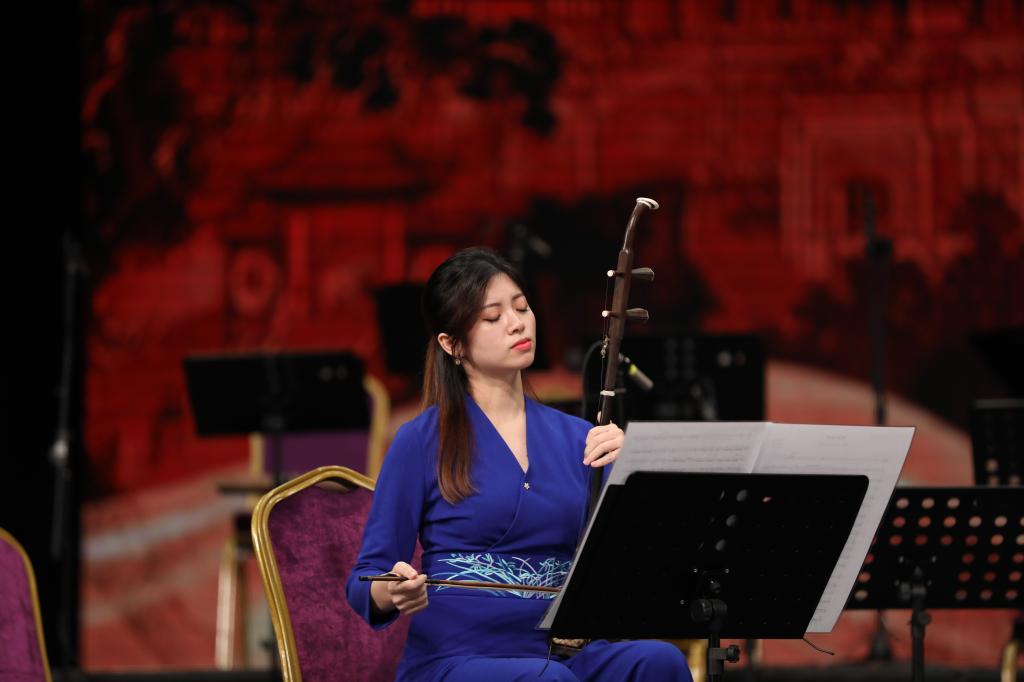 《丝路拾光》以悠扬的旋律带大家穿越了丝路的繁华与历史,节奏轻快、抒情优美。演奏者其艺术情感表达及演奏技巧的丰富多样,让人耳目一新,现场观众深深被这首曲子的浪漫美妙所吸引,增进了对优秀传统文化的热爱与认同。《阳光照耀着塔什库尔干》乐曲旋律优美,热情奔放,具有浓厚的民族风情,展现了辽阔美丽的草原风光和牧民们骑在马上弹琴高歌的欢乐情景。《狂想曲》曲调慷慨激昂,表达出了兴奋、狂热、喜悦的情感,将扬琴这一传统古老的民族乐器注入了新的表现活力。在一声声旋律递进中将气氛推向最高潮,赢得了观众经久不息的掌声和欢呼。