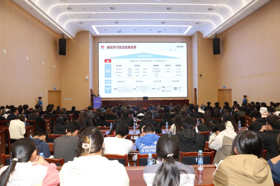 陈乐平在会上致辞,他从“产教融合成果汇报(学习环境打造)”“旅程式学习模块详览(学习方向指引)”“高校学习生态你我共建共享”三个方面来简述了双方合作以来通过多途径培养学生成长成才的过程。