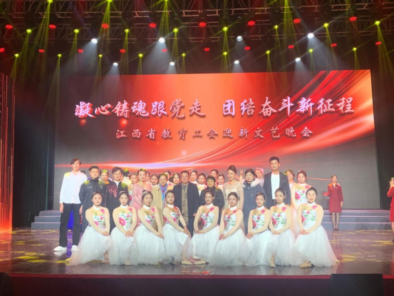12月22日晚,由江西省教育工会主办的“凝心铸魂跟党走 团结奋斗新征程”迎新文艺晚会在南昌航空大学大学生活动中心举办。我校董事长黄玉林作为劳模代表受邀出席。