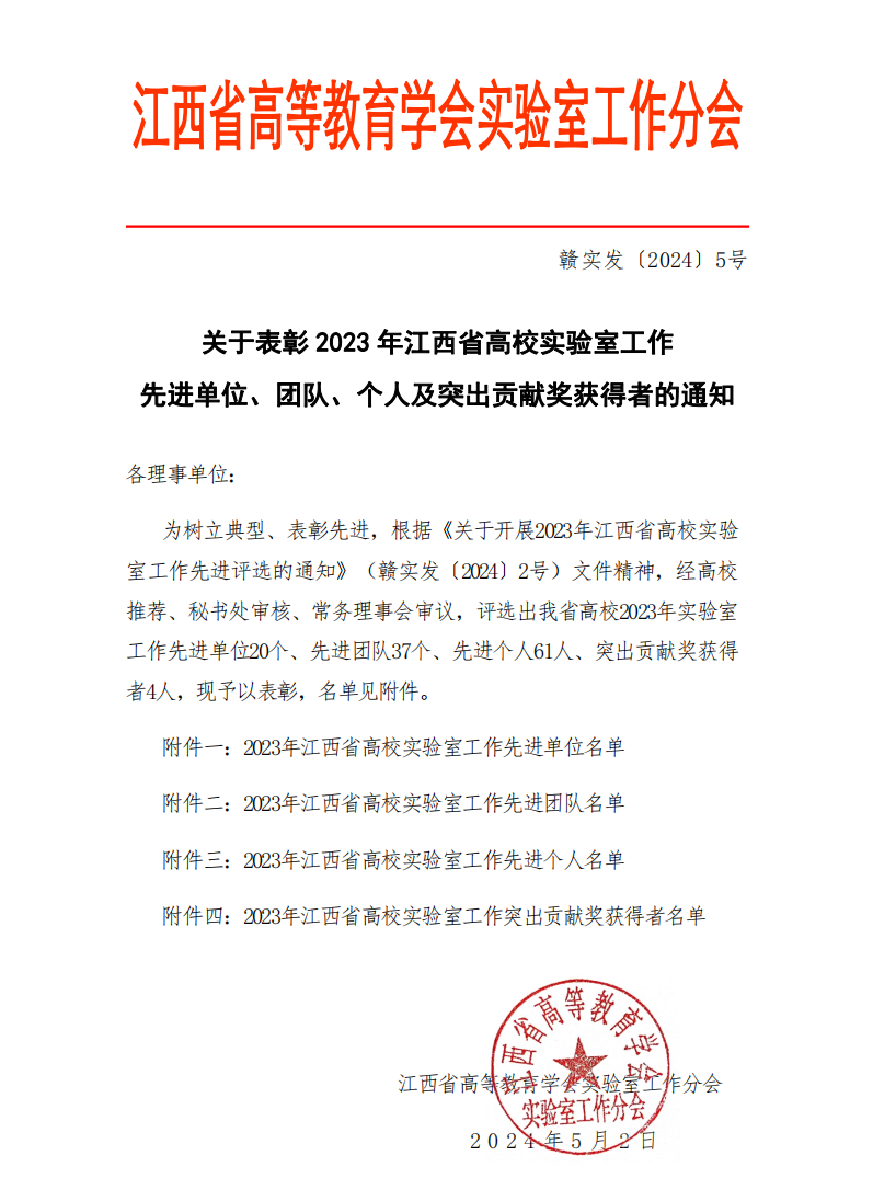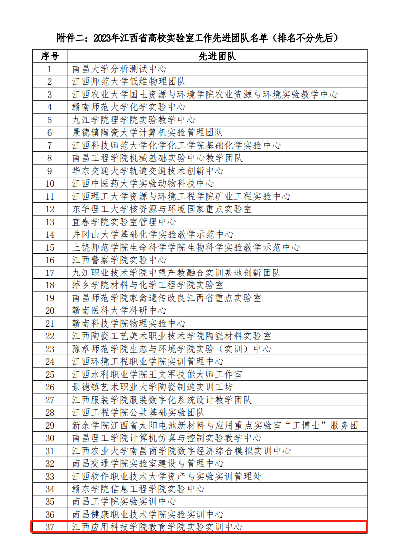 近日,江西省高等教育学会实验室工作分会印发《关于开展2023年江西省高校实验室工作先进评选的通知》,我校获评“2023年江西省高校实验室工作先进单位”、教育学院实验实训中心获评“2023年江西省高校实验室工作先进团队”、刘宇中获评“2023年江西省高校实验室工作先进个人”。我校为唯一获得先进单位的民办高校。