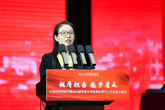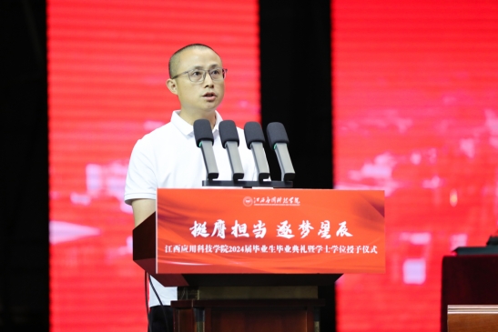 黄玉林在毕业典礼上发表主题为“追求卓越 行知愈强”的讲话。他首先代表学校向顺利完成学业的同学们及其亲友表示热烈祝贺,向悉心培养同学们的老师致以衷心的感谢。黄玉林指出,全体应科人以昂扬的精神风貌和顽强斗志,通过教育部本科教学合格评估,为学校下一步高质量发展开新局;确定了AI时代本科高校应用型人才培养发展目标为学校实施数字化教育发展抢新机;与国内头部企业共建六大产业学院以“八共”办学特色为我校产教融合闯新路;在国内外各大比赛上屡创佳绩为学校教学内涵建设和文化铸校添新彩;智能化生态校园和刘光华自然遗产博物馆的建设初具规模展新风貌。“五新”的应科以她丰厚的文化底蕴、鲜明的办学特色、优良的生态环境、在迎接建校四十周年的光辉时刻,在数字化时代追求卓越,众志成城,舞出精彩,干出奇迹。