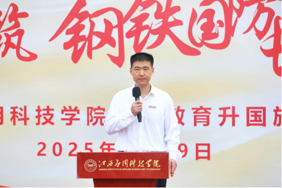 仪式上,党委副书记、纪委书记江星讲授了一堂国旗下的“大思政课”。他指出,在国庆节即将到来之际,我们在此举行升旗仪式,意义尤为特殊。注视着五星红旗冉冉升起,我们更能深切感受到与国家命运相连的归属感与责任感。他强调,国旗是民族精神的象征。作为与新时代同向同行的大学生,同学们生逢其时,重任在肩,应主动将爱国热情转化为砥砺奋进的内在动力。他勉励全体同学,要将“爱国情、强国志”切实转化为“报国行”,在新学期的征程上,要坚定理想、锤炼本领,将个人的成长自觉融入国家发展的洪流,用“请党放心、强国有我”的实际行动,谱写无愧于时代的青春华章。