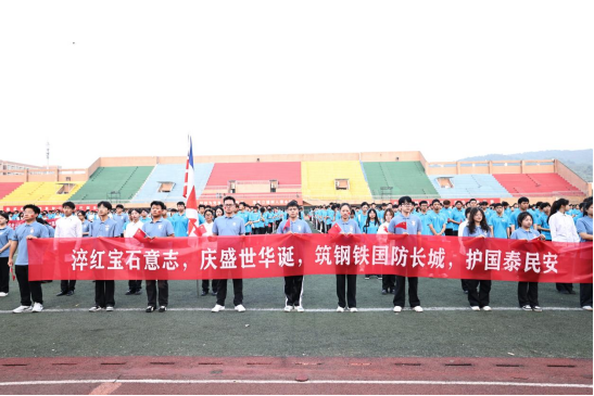 礼赞新中国,奋进新时代。9月27日上午,在国庆节即将到来之际,学校在星洲田径场隆重举行2025年秋季学期升国旗仪式。学校党委副书记、纪委书记江星,副校长张敏出席升旗仪式。活动特邀北京市“青年榜样”宣讲团成员、原中国人民解放军仪仗司礼大队国旗护卫队擎旗手张自轩参加。学校学工部、团委负责人,各二级学院党总支负责人、团总支负责人,全体专兼职辅导员及学生代表共同见证这一庄严时刻。