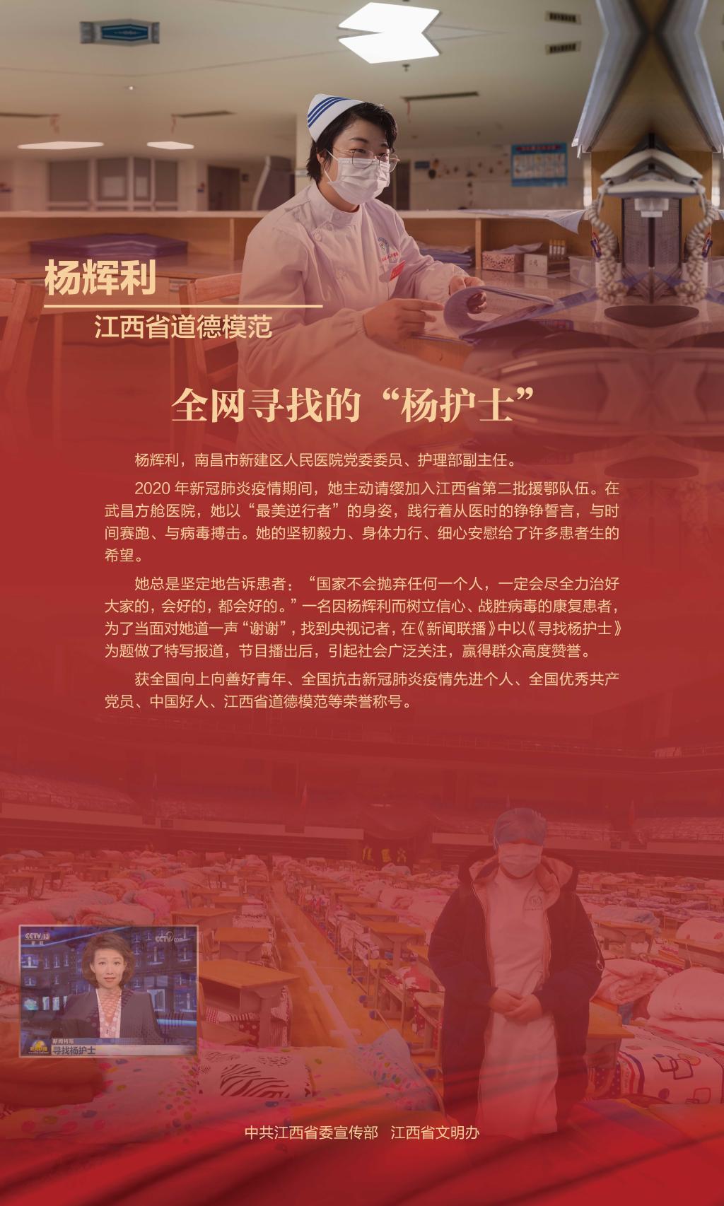 新冠疫情蔓延时,杨辉利不顾个人安危,主动请缨成为江西省第二批援鄂人员。面对武昌方舱医院病房设施不配套、医疗物资不充足、后勤保障不协调等实际困难,她没有丝毫退缩,反而越战越勇。在人们的心目中,只要一提起杨辉利,就会自然想起,武汉抗疫斗争的关键时刻,那个从容的女孩身影,那些质朴的话语和带着温暖的护理,她的举动充满了向上的正能量,带来了生活的希冀和期望。