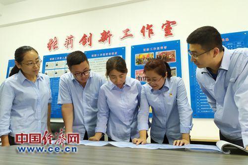 张莉(右二)与同事讨论产品图纸。经济日报-中国经济网记者佟明彪/摄
