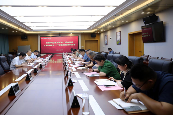 6月5日下午,省委教育工委宣传部部长、省教育厅社政处处长王宣海一行莅临学校调研指导工作。学校党委书记贺一松,党委副书记、纪委书记江星,党委委员、副校长谢远健陪同调研。省委教育工委宣传部、省教育厅社政处相关人员,学校党委宣传部、学工处、马克思主义学院等相关单位负责人参加调研。