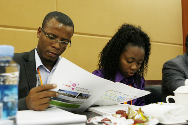 城院新闻网讯记者卢勇华报道:3月26日,由安哥拉、莫桑比克、佛得角、圣多美和普林西比、几内亚国家政党青年领导人组成的考察团一行19人在国家行政学院培训中心副司级班主任刘钢、江西行政学院国际交流处处长潘锦屏、副处长朱灿明等人的陪同下来我校考察交流。校领导黄玉林、胡振鹏、严平、李存益、徐国荣、黄珍珍、周运浩等热情接待了考察团一行。 学校在图书馆四楼会议室举行座谈会,同考察团一行交流探讨青年教育及创业就业等方面的工作。董事长黄玉林对外宾的到来表示热烈欢迎,并向他们介绍学校的基本情况。他说:江西城市学院是一所着力服务中国城镇化建设,为社会培养复合型、应用型、创造型人才的全日制应用型高等院校。学校办学特色鲜明,始终致力于高等职业教育的探索改革,尤其重视对青年学子的人格教育和实践技能的培养。 校长胡振鹏向考察团一行从实验实训基地建设、创业教育、就业工作三个方面详细介绍了学校有关大学生就业创业等方面的情况。他说:学校高度重视毕业生的就业创业能力教育。以就业创业为导向,深化教育教学改革,加大投入建设好实验实训基地,提高了实验实训教学在整个教学活动中的比重。他表示:学校把培养高素质的技能型、应用型人才作为办学目标,把就业创业教育纳入整体发展规划,把毕业生就业作为学校教育、教学质量和办学水平的重要检验标准。努力提升毕业生的就业竞争力。以引进合作企业、生产和教学相结合、工学交替、校企互动、“订单”式合作等多种模式,多举措提高学生的实践能力、创造能力、就业能力和创业能力。 座谈会上,莫桑比克解阵党楠普拉省代表多明戈斯·托莫等还同学校领导进行了交流,托莫问道:学校有没有一些相关的政策来促进学生技能创新? 胡振鹏介绍:现在中国对高等职业教育高等重视,培养有能力、懂技术的高级专门型技能人才是国家经济转型发展的关键,城市学院紧紧围绕培养复合型、应用型、创新型人才的目标定位,成立了学校、学院、班主任三级毕业生就业工作管理体制,推进人才培养模式创新,成立了专业技能工作室,鼓励支持学生技能创新。 考察团一行还实地考察了建筑工程实验实训基地、机电工程实验实训基地、电工电子实验实训基地、经济管理实验实训基地并饶有兴致地在艺术实验实训基地观看了现场舞蹈、歌曲的教学。考察团一行对学校在学生就业创业、实验实训基地建设、校园建设等方面的工作给予了充分肯定。