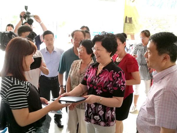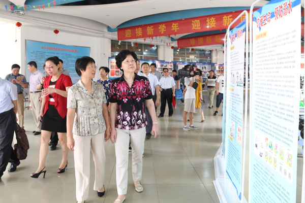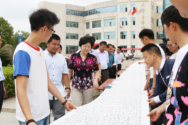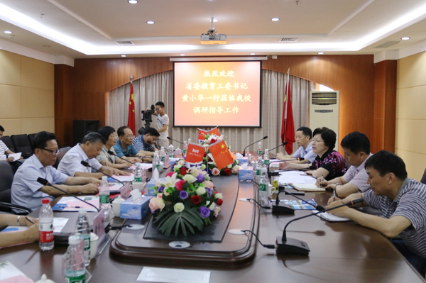 黄小华书记在座谈会上讲话 本网讯(记者/闻学摄影/黄愈)6月30日,省委教育工委书记黄小华一行莅临我校调研指导工作,并在图书馆四楼会议室召开座谈会。调研中,黄小华书记一行先后查看了学校基础设施建设情况,观看了纪念建党95周年图片展和校园安全教育图片展。 黄小华书记对学校开展“两学一做”学习教育活动,尤其是组织教师用毛笔抄写《党章》百米长卷表示肯定。她希望广大党员干部要时刻牢记党的宗旨,将学习党章党规内化于心、外化于形,做一名合格的共产党员。黄小华十分关心学生的暑期安全,在观看学校防溺水安全教育图片展后,她要求学校一定要提高认识,认真做好学生防溺水工作,从源头上杜绝学生溺水事件的发生。在毕业生办理离校手续的大厅,黄小华书记与毕业生亲切交谈,详细询问同学们的毕业去向和未来规划,勉励大家在未来的工作中,不管是就业还是创业,都要脚踏实地,勇敢追寻自己的梦想。 调研期间,黄小华认真听取了学校有关工作情况汇报,对近年来学校坚持特色办学,在人才培养、校企合作、党团建设、安全稳定以及转型发展上不断探索,积极培养应用型专门人才的做法表示肯定。 她指出,江西应用科技学院各项基础工作扎实,安全教育到位、防范到位,党建有特色,“两学一做”学习教育成效显著。 她强调,学校要按照“两学一做”学习教育的统一部署,充分发挥各级党组织的战斗堡垒和广大党员干部的先锋模范作用,勇于改革创新,务实担当,不断深化教育教学改革,从外延扩张、规模发展向内涵建设、质量提升转变;进一步严格招生管理和教学管理,不断提高人才培养质量,实现创新和转型发展,为社会培养高层次应用型人才。 省纪委驻省教育厅纪检组组长杜志刚,高教处处长邓弘、安全稳定工作处处长李伟陪同调研。学校胡振鹏、汪毓华、严平、李存益、徐国荣、黄珍珍、吴朝栋、李锋等校领导参加座谈会。
