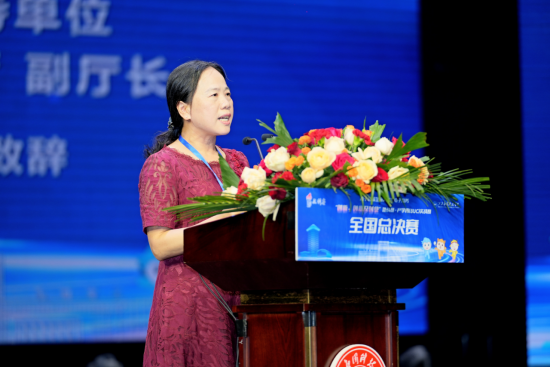 江西应用科技学院常务副校长干甜在闭幕式上发表讲话。她首先代表承办单位对各参赛团队取得良好成绩表示衷心的祝贺,对评委专家、比赛工作人员、学生志愿者们在酷暑中辛勤工作,对竞赛组委会以及各兄弟院校对江西应用科技学院的信任与支持致以最诚挚的感谢。闭幕式上,干甜对学校的人才培养、办学方向、校本理念、校园精神、发展战略、校园文化风格等方面作了简要介绍。她指出,大赛充分展示了本届产学用(BUC)实战赛全国各团队的产教融合与三创的成果。参赛项目体现了各个赛区的同学们积极投身服务国家战略,区域经济高质量发展,围绕产教融合主题,结合所在学校学科专业特色和优势,开展具有前瞻性、落地性、服务型的三创实验实践活动,集中展现了我们广大青年学子干事创新创意及创业的昂扬风貌。她希望参加本次比赛的同学们将比赛中的所学所感所悟运用到未来的学习和生活中,不断提升自身的专业素养和综合能力,期待更多的青年学子能够投身于电子商务领域,成为新时代电子商务行业的中坚力量,为经济发展和社会进步贡献自己的力量。