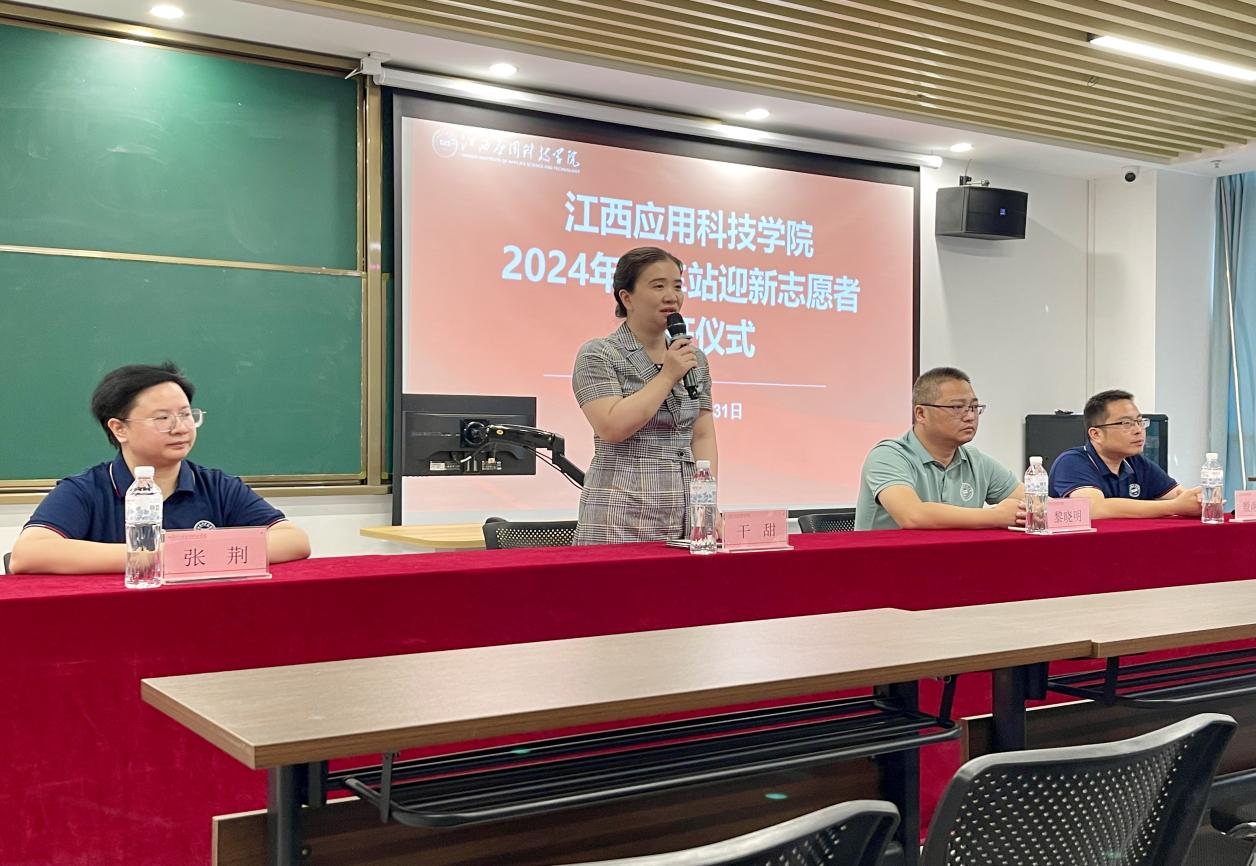 8月31日上午,江西应用科技学院2024年火车站迎新志愿者出征仪式在三元大厦101教室举行。学校常务副校长干甜、校长助理兼学工(部)处长黎晓明、校团委书记张荆以及全体火车站迎新志愿者师生共同出席了本次活动,仪式由艺术设计学院党总支书记殷南琰主持。