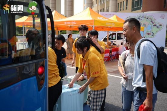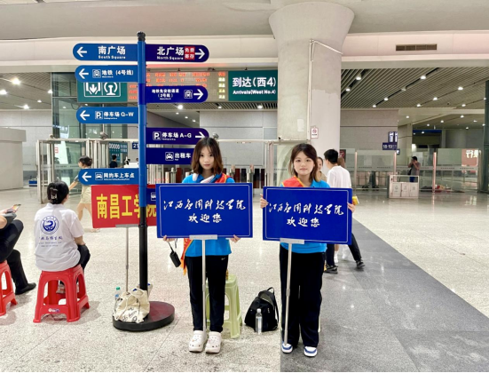 为保障各地新生安全有序入校报到,学校精心部署,在南昌站、南昌西站、南昌东站、南昌南站都设有接站点,有老师和热心的志愿者们在这里迎接新同学,引导他们乘坐学校安排的车辆直达校园,为新生及新生家长提供全方位一站式服务。学校在校门口迎新点安排了多批次的摆渡车辆,力求让学生和家长“少跑腿”。