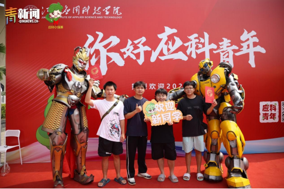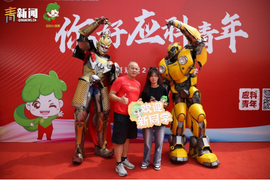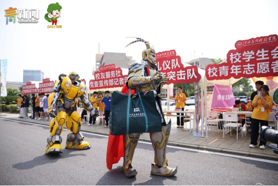 迎新季创意满满,机器人闪亮登场。为了给大一新生们留下难忘的入学体验,江西应用科技学院别出心裁地请来了“大黄蜂”和“孙悟空”两位重磅“嘉宾”,以独特的方式“整活”,成功吸引了众多新生同学的围观互动。
