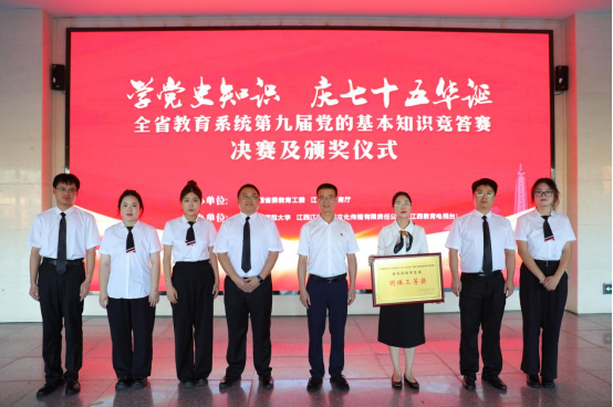 9月29日,全省教育系统“学党史知识 庆七十五华诞”暨第九届党的基本知识竞答赛决赛在江西科技师范大学举行。经激烈角逐,学校未来技术学院21本物联网工程2班高磊、智造学院22本电子信息工程1班顾丽娜、音乐学院21本表演1班陈情、音乐学院21本表演4班王芬、未来技术学院22本物联网工程3班朱慧强组成的学生代表队最终荣获本次竞答赛本科院校学生组团体三等奖。