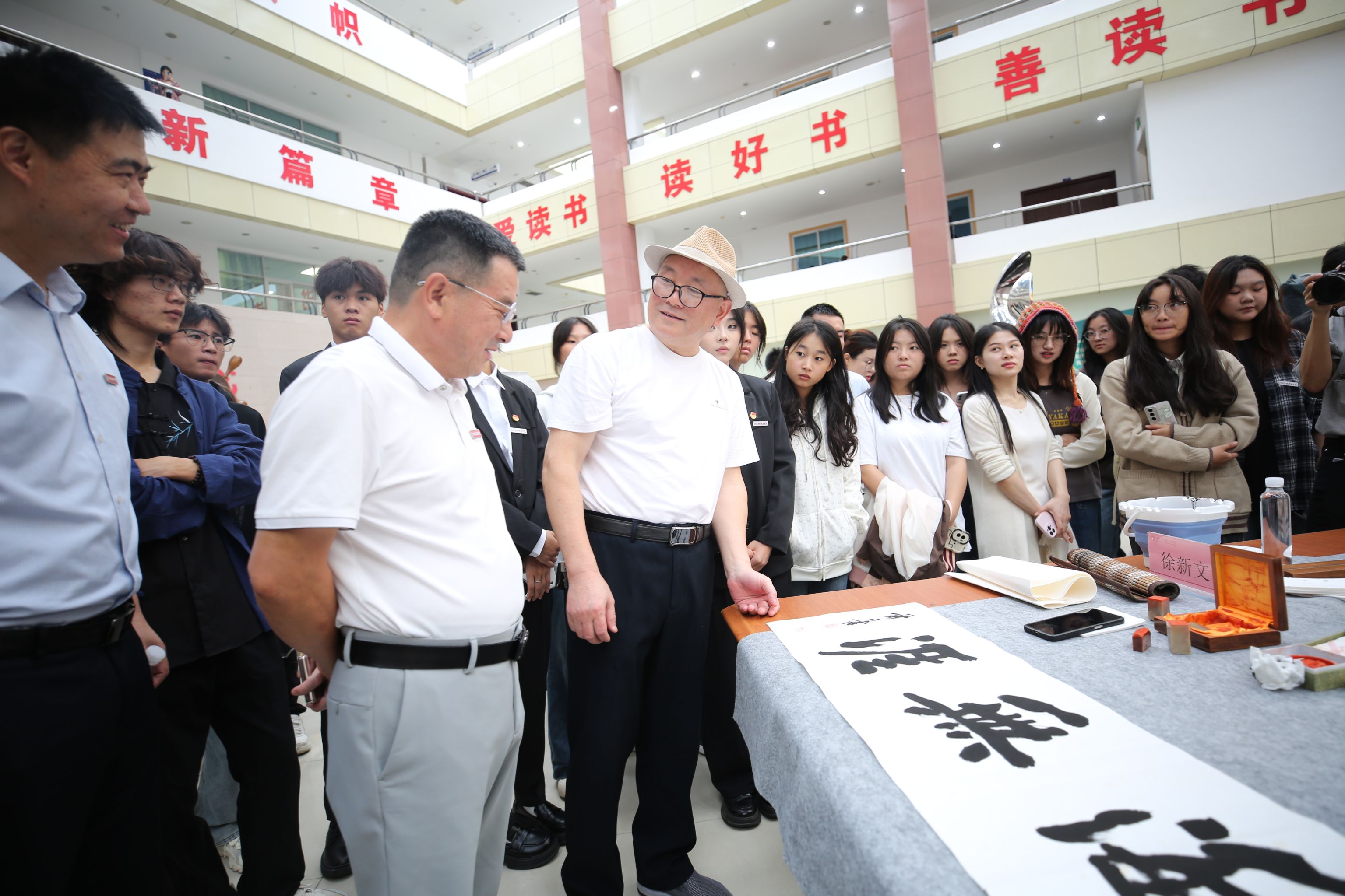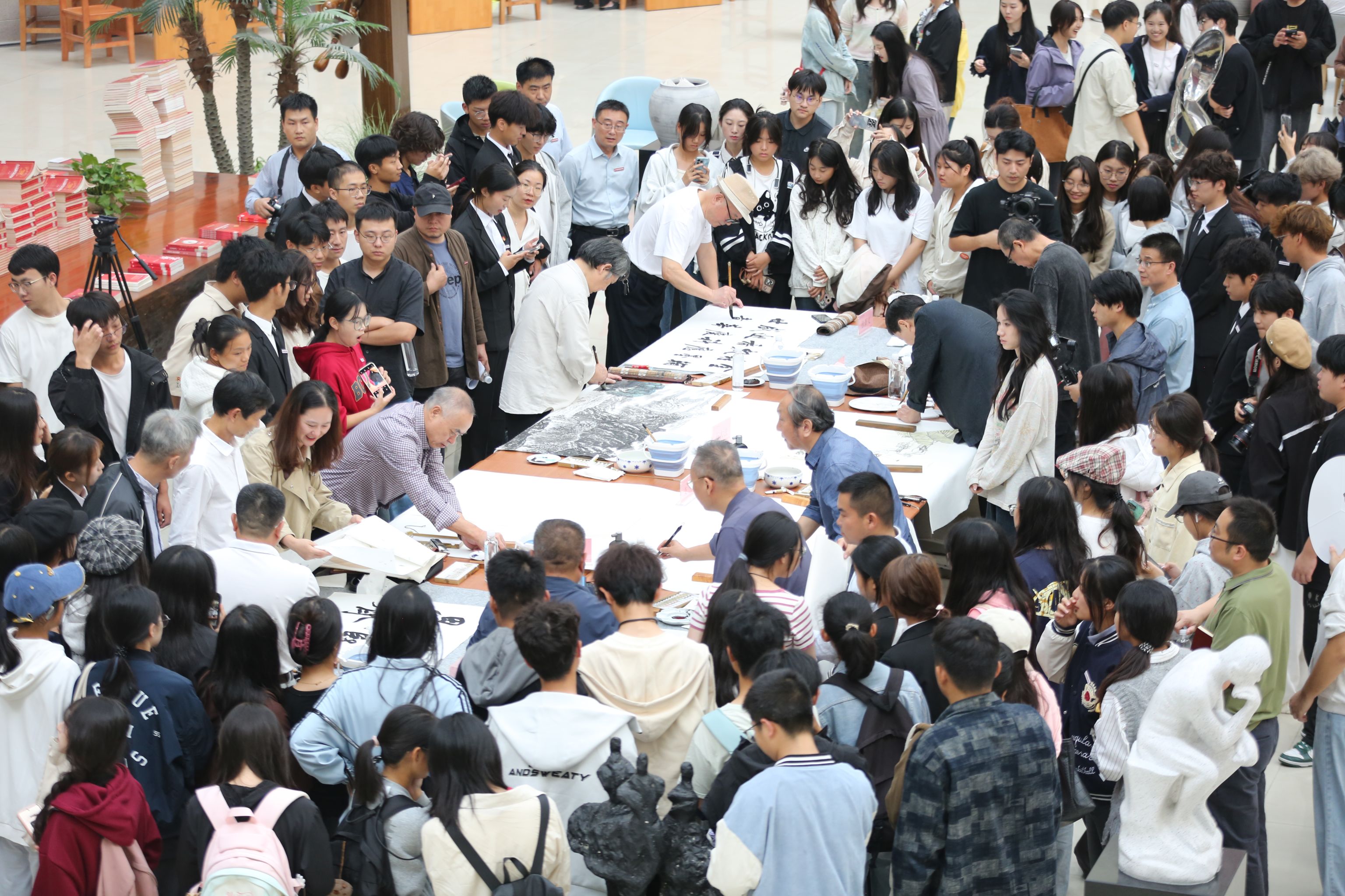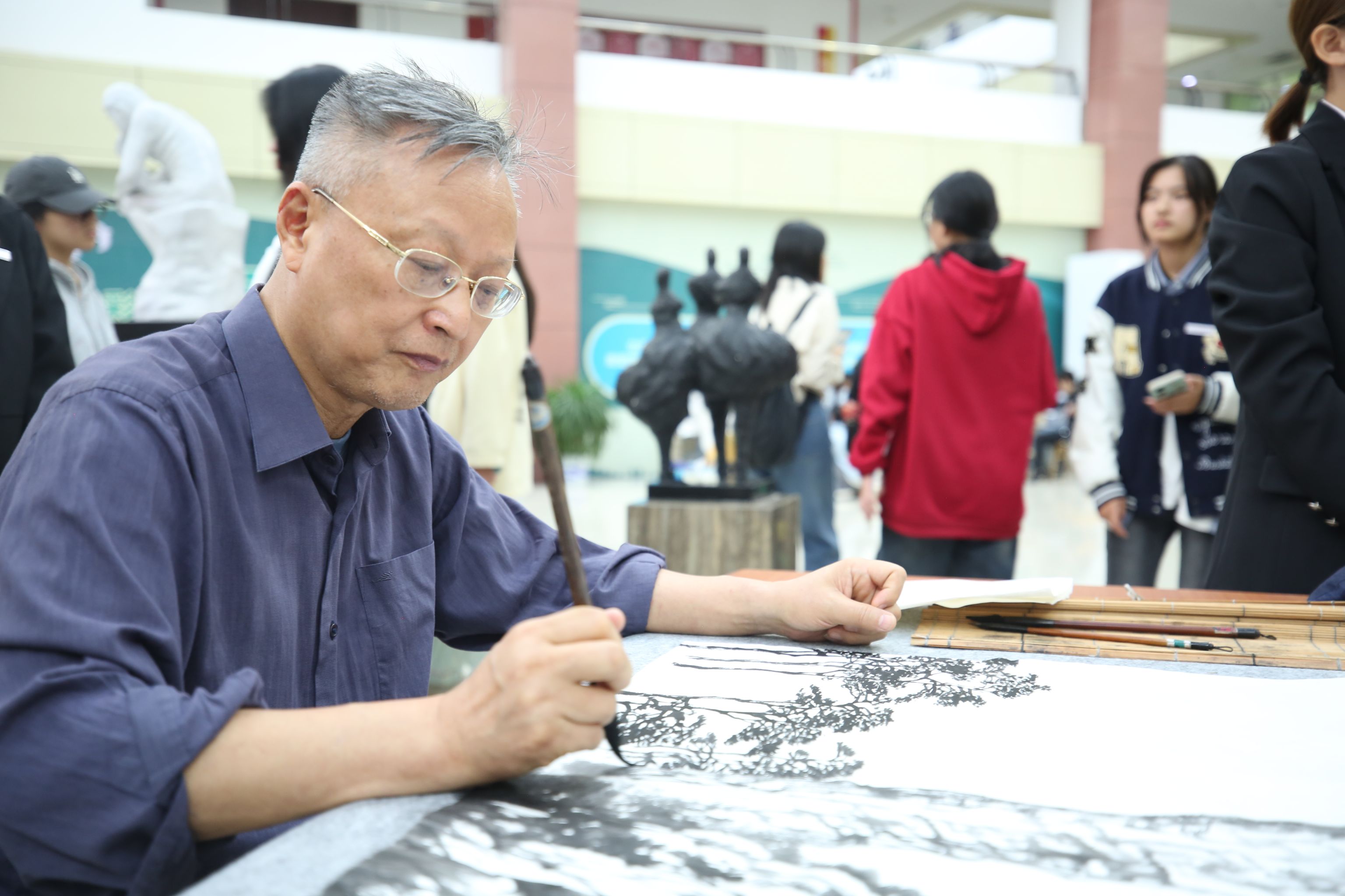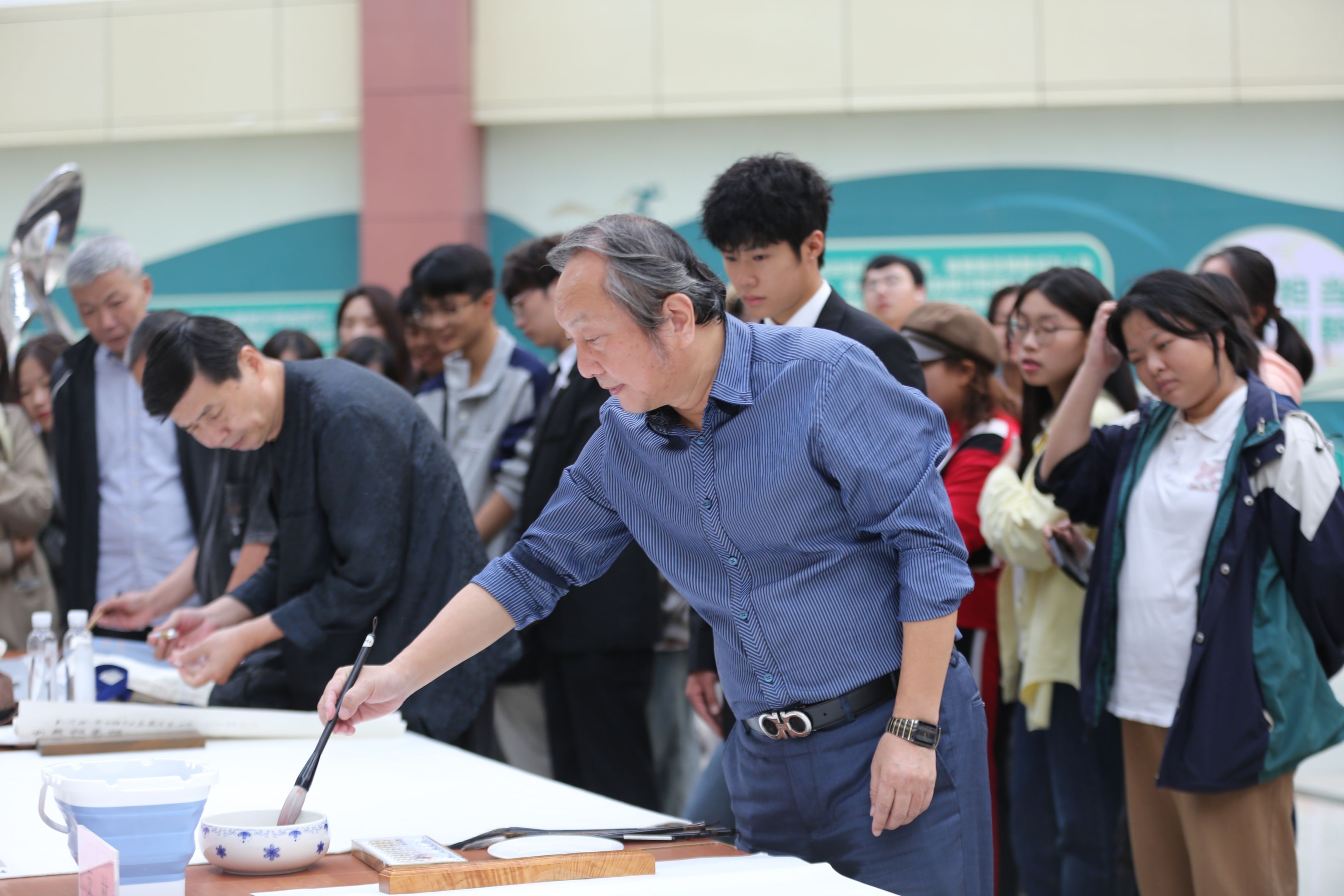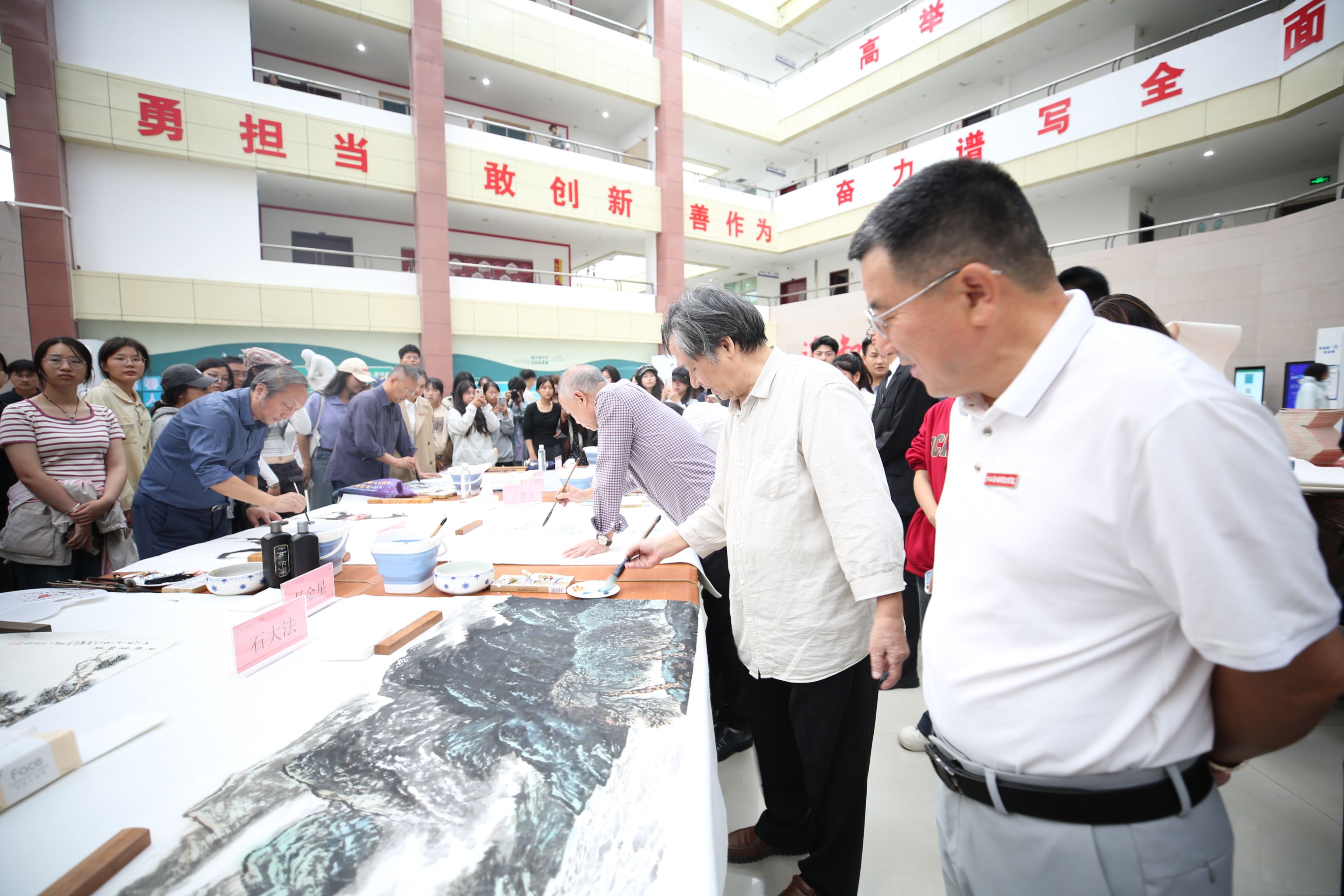活动开始后,各位艺术家豪情泼墨,尽显才情。师生们积极参与交流互动,现场氛围热烈,来往学生络绎不绝,纷纷驻足观看。
