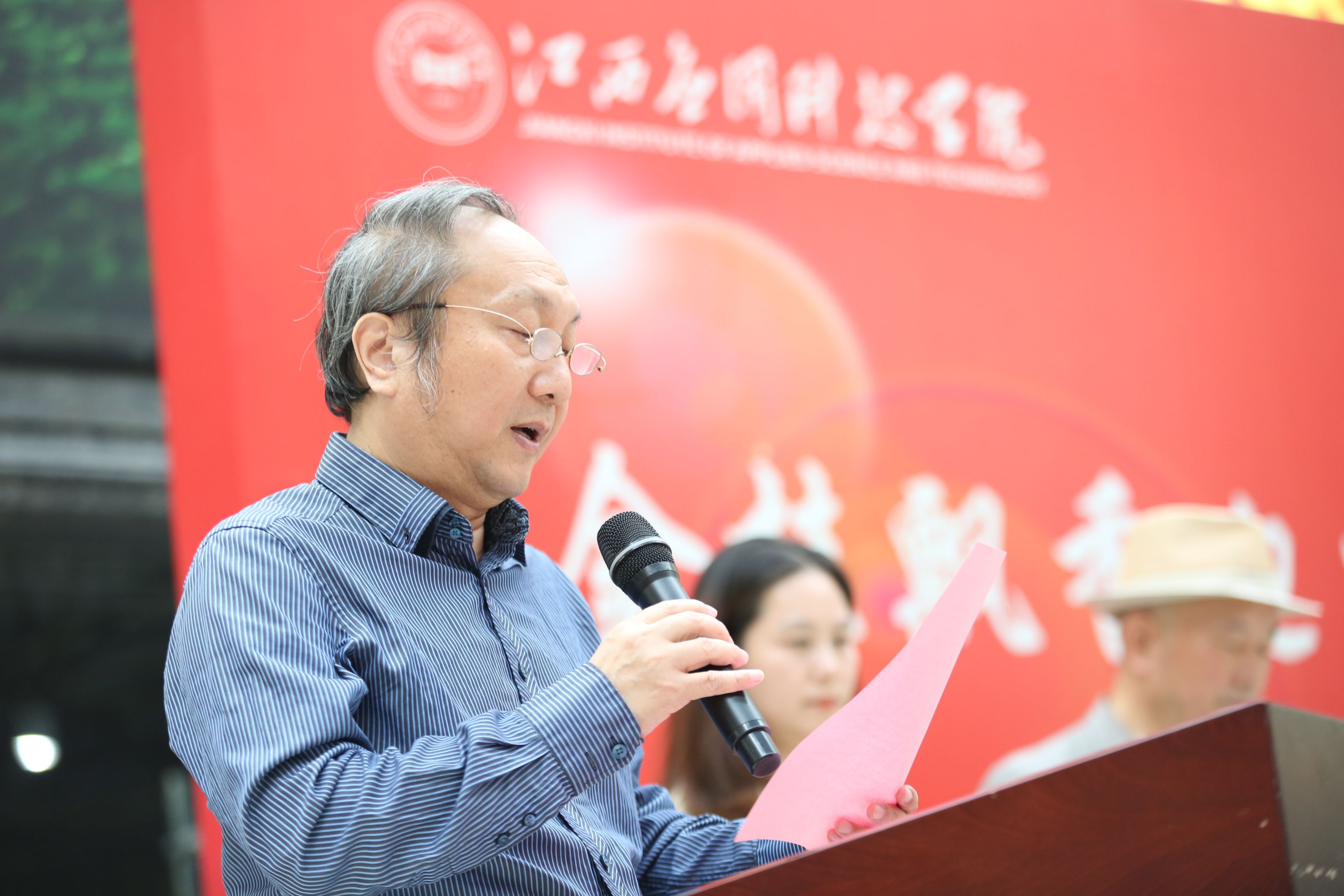 黄玉林在会上致欢迎辞。黄玉林指出,此次书画笔会活动既是深入学习贯彻习近平文化思想和贯彻落实习近平总书记考察江西重要讲话精神的一次生动实践,也是学校携手艺术家矢志不渝,坚守初心,致力于描绘时代之风貌、镌刻时代之印记、弘扬时代之精神,以艺术之美熏陶人心,以优秀文艺成果向新中国成立75周年献礼。