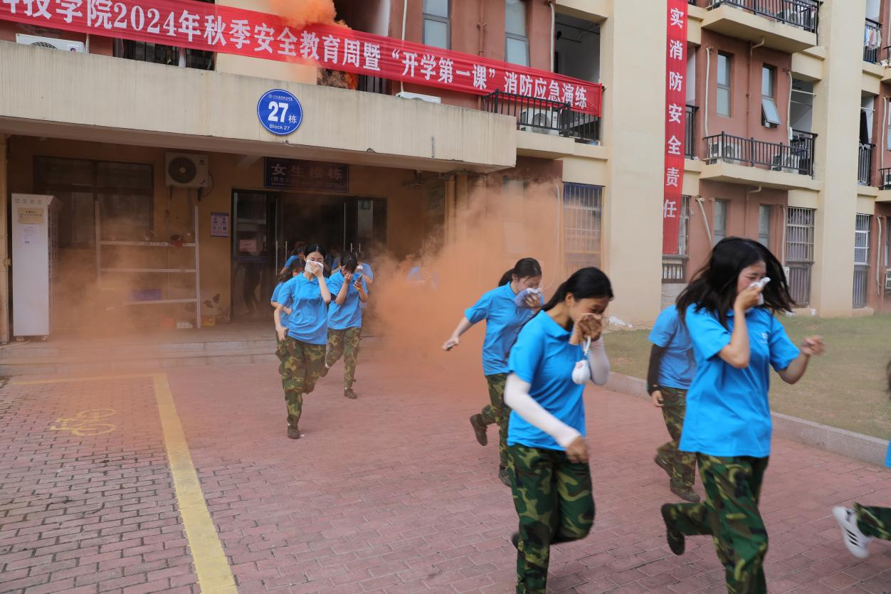 9月13日,学校保卫处联合南昌市新建区璜溪消防救援中队在学生宿舍楼27栋(五食堂旁广场侧面)开展2024级新生消防安全培训暨火灾疏散逃生演练活动。学校副校长张敏出席,各学院党总支书记(副)、学工科长(副)、各学院师生代表、图书与档案信息中心教师代表、产教融合与实验实训中心教师代表、食堂、物业公司楼栋保洁人员代表、全体宿舍管理员及生活老师、安保人员参加活动。活动由保卫处副处长宋晓卫主持并负责现场指挥。