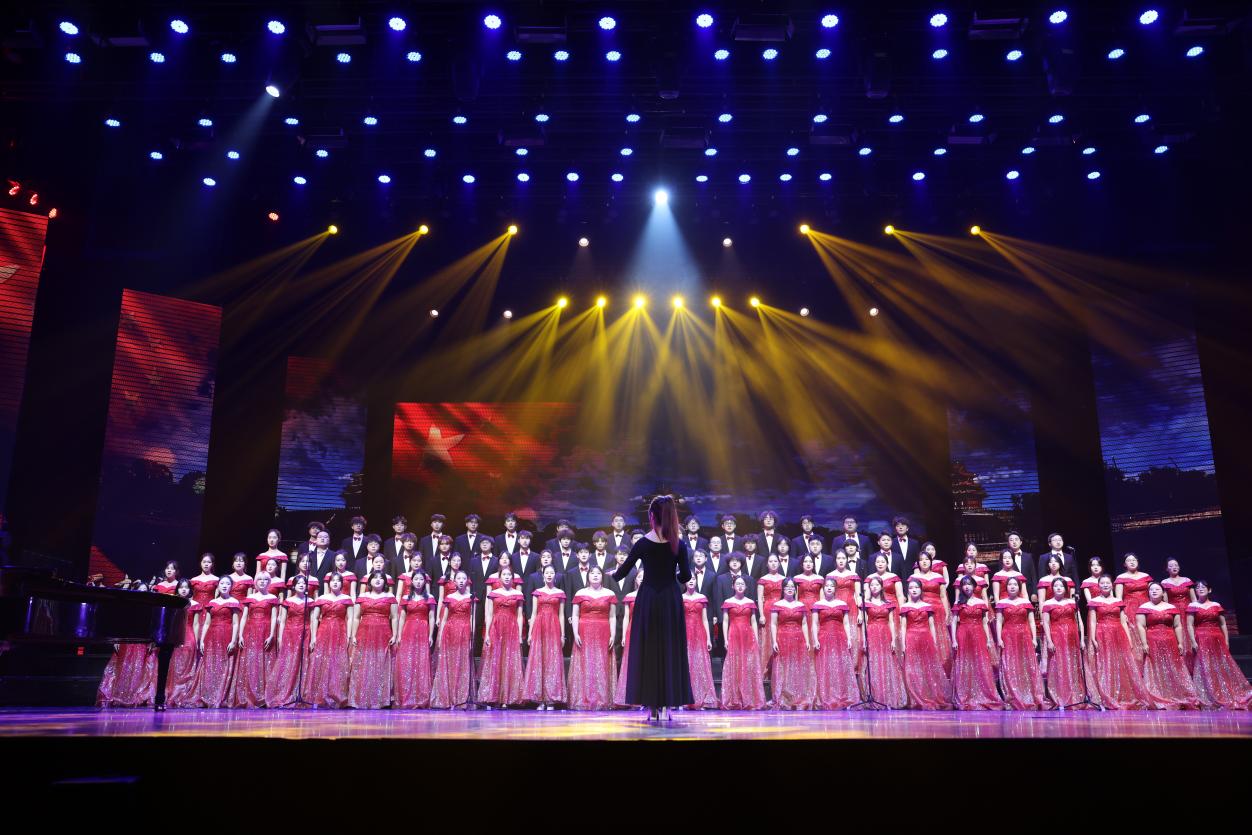 霓灯初上,随着未来技术学院合唱团带来的《有我》的歌声响起,合唱节汇演拉开了序幕。教育学院的《我们一起远航》,艺术设计学院的《不忘初心》,经济管理学院的《如愿》,建筑学院的《再回首》,宝石矿物资源学院的《在太行山上》,商学院的《追寻》,智造学院的《这世界有那么多人》表达了应科人对祖国的美好祝愿和对未来生活的期待。飞扬的歌声,吟唱难忘的岁月,熟悉的旋律,演绎时代的激越,8支合唱队伍轮番上台,一首首优美的歌曲回荡在音乐厅上空,以应科人的真挚与热忱歌颂最亲爱的祖国。现场师生深受感染,整场演出掌声阵阵。最后,江西应用科技学院青云合唱团的《我爱你中国》《撞歌》,将此次合唱节推向高潮。合唱比赛在台上台下千人合唱校歌《我们是时代的栋梁》中圆满结束。