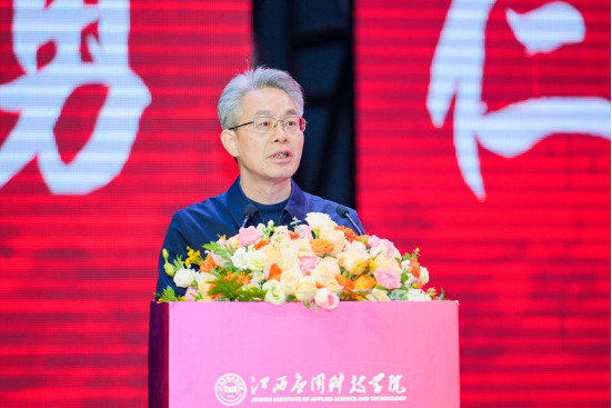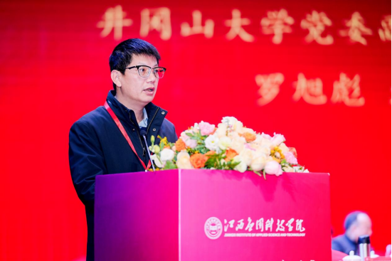 井冈山大学党委副书记、校长罗旭彪代表兄弟院校致辞。他高度赞扬了学校在教育领域,尤其是“三元育人”校本理念实施以来所取得的显著成就,他表示,习近平总书记曾强调高等教育的多样化发展及应用型本科高校的重要性,而江西应用科技学院作为应用型转型试点高校,积极探索创新实践,已见成效。他希望以此次大会为契机,进一步加强院校之间的合作交流,面向未来共同笃定前行、共谋发展,推进教育强国建设,为奋力谱写中国式现代化江西新篇章作出新的更大的贡献。