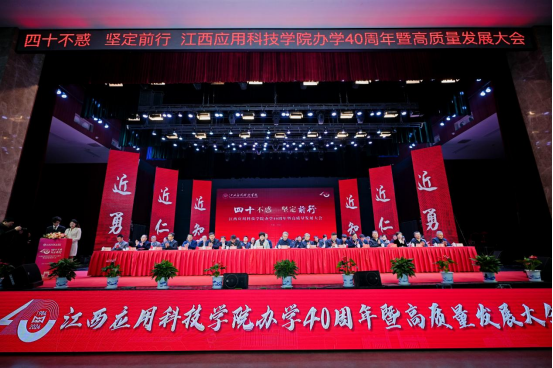 12月29日上午,江西应用科技学院音乐厅内“四十不惑,坚定前行”的主题标语庄重醒目、振奋人心,办学40周年暨高质量发展大会在此举行。江西应用科技学院理事长黄玉林作题为“在改革开放中奋起 在创新发展中奋进”的建设与发展工作报告,大会由学校党委书记贺一松主持。