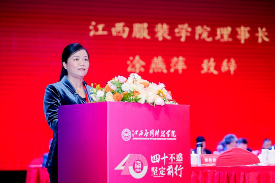 江西服装学院理事长涂燕萍作为兄弟民办院校代表发表讲话。她表示,40年栉风沐雨,40年砥砺前行。江西应用科技学院秉持“健全人格+复合知识+实践能力”的三元育人校本理念,遵循“近知、近仁、近勇”的校训,更新思想,细化管理,勇于探索,破浪前行,成绩斐然。站在新的起点,相信江西应用科技学院将继续发扬优良传统,深化教育教学改革,加强内涵建设,深化产教融合,在培养更多适应时代需求的复合型人才方面再创辉煌!