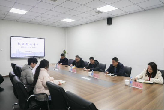 为进一步加强学校与师生员工之间的密切联系,广泛听取意见建议,促进校园和谐发展,2月19日下午,校领导接待日活动在学校综合楼一楼会议室举行。校党委书记贺一松与来自各学院的师生代表进行“面对面”交流,听取师生的意见与建议,现场解决师生“急难愁盼”问题。教务处、学工处、总务处、校办相关负责人陪同参加。