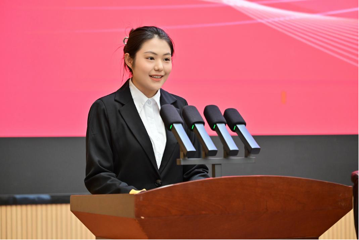 学生代表方启梦、陈艳蕾在会上分享了自己的创作感悟并发起倡议,号召全校青年主动担当作为,发青年之声、献青年之志、聚青春之力,为江西的高质量发展贡献青春智慧和力量。