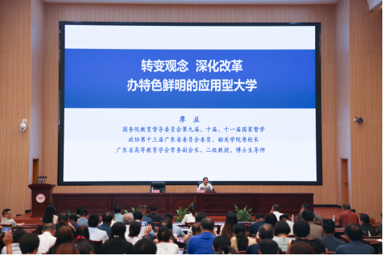 报告会上,廖益教授以“转变观念深化改革办特色鲜明的应用型大学”为题,紧扣高等教育高质量发展主线,围绕新一轮本科教育教学审核评估、民办高校发展、人工智能赋能教学及硕士点建设等重点内容,作了一场高站位、深层次、强引领的专题报告。