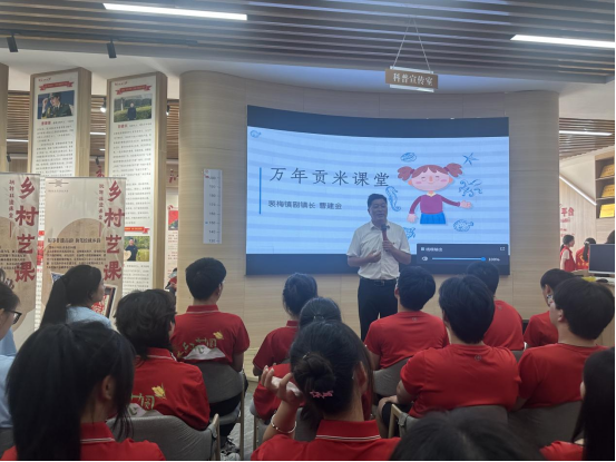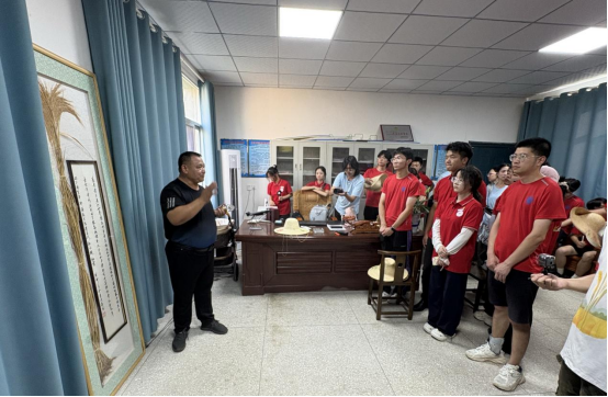 在万年县农科所种植基地,科研人员围绕水稻育种技术、现代种植模式与农业科技应用进行了细致讲解。队员们深入了解从传统农耕向现代农业转型的现实路径,感受到农业现代化带来的巨大变化。随后,裴梅镇副镇长曹建金为实践队讲授“农耕文化”万年贡米微思政课,围绕贡米的历史渊源、种植特色与品牌价值,帮助队员们深入理解贡米所承载的农耕智慧和文化意蕴,为后续实践活动打下扎实的认知基础。