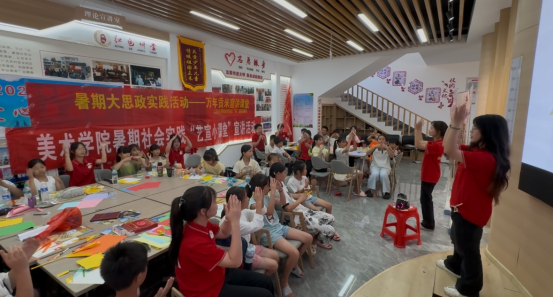 在理论宣讲环节,队员们结合自身所学,以通俗易懂的语言讲述对农耕文化的理解,引导孩子们从一粒米中读懂粮食的珍贵与劳动的价值,激发他们对农耕文明的兴趣与敬意。在轻松愉快的互动氛围中,青年学子与乡村儿童共同完成了一场跨越年龄的文化对话,也在孩子们心中播下了传承农耕文化的种子。