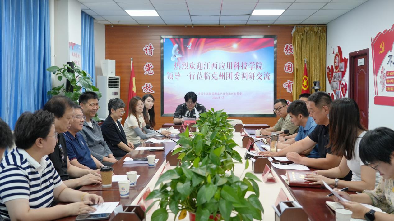 调研期间,黄玉林理事长围绕“赣疆青年交流合作”“三下乡”社会实践和“西部计划”志愿服务等内容,与克州团委深入交流。他指出,学校始终将青年学生的理想信念教育与实践锻炼作为育人体系的重要一环,尤其关注及西部计划志愿者及来疆工作的毕业生在基层一线的成长路径与责任担当。此次走进克州,既是一次现场走访,更是一次深化理解、凝聚共识的过程。希望以此为契机,进一步推动学校与克州在青年实践育人方面的常态化协作,为更多学子搭建扎根西部、服务社会、砥砺成才的广阔平台,在祖国边疆沃土上书写青春答卷、贡献青春力量。