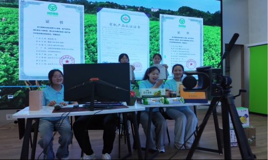 在江西繁盛现代农业科技有限公司,实践队成员见证了冷链物流与智能化加工的高效运作,体悟到赣商“务实创新”的精神在现代农业中的生动实践。在蚕桑文化展示厅,古老的缫丝机具与现代化的深加工设备并陈,展现了“以文兴业”的智慧传承。企业负责人讲述创业艰辛、技术突破与带动乡亲致富的故事,让“致富不忘桑梓”的家国情怀具体可感。走进电商直播间,来自电子商务专业的实践队员运用专业知识热情推介江西好物,从中更深刻地理解了赣商精神“与时俱进、敏察时势”的内涵,体会到传统精神在数字时代焕发的新活力。
