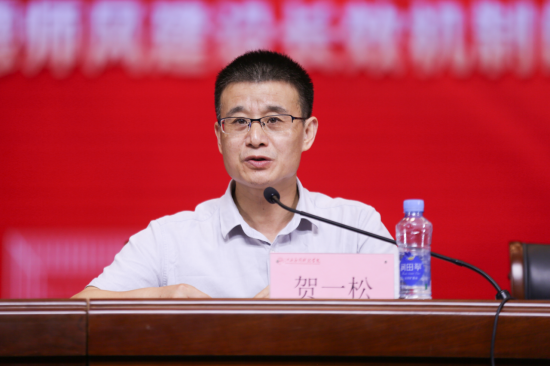党委书记贺一松传达学习了《关于健全新时代师德师风建设长效机制的意见》文件精神。他要求,要提高政治站位,深化思想认识,牢牢把握师德师风建设的时代要求;完善制度体系,强化全链条管理,构建师德师风建设长效机制;强化教育引导,注重人文关怀,夯实素养提升的坚实基础;突出典型示范,营造尊师氛围,释放师德师风建设的强大正能量。他强调,广大教职工要深刻认识师德师风建设的重大意义,不断探索和改进新时代师德师风建设的路径方法,抓好抓细师德师风建设体系,积极构建全员、全程、全方位育人工作格局,奋力谱写建设中国优质应用型大学崭新篇章。