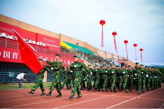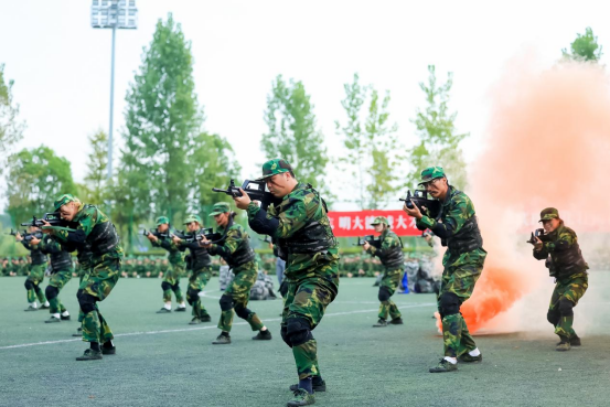 在军训汇报表演中,全体参训学生组成的27个连队进行了分列式表演,展示了刺杀操、匕首操、战术、军体拳等训练科目,充分彰显了我校学子积极昂扬的精神风貌。