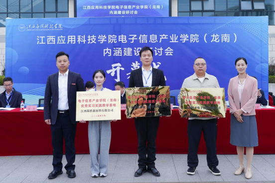 研讨会期间,龙南市政府副市长徐丽芸、市教体局局长赖红霞与学校执行理事长王立分别为往届留企优秀毕业生、优秀指导教师及优秀实习实践教学基地颁奖,表彰其在协同育人方面的积极贡献。