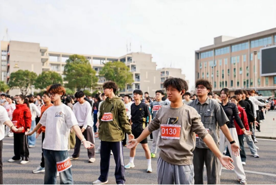 热身环节,专业教练带领全体参赛师生进行了充分准备。现场气氛热烈,参赛选手精神抖擞、斗志高涨,展现出蓬勃向上的精神风貌。