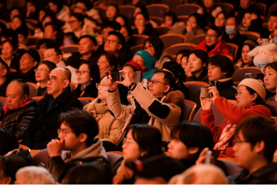 在“画卷”篇章中,《美丽的夏牧场》引领观众走入辽阔而诗意的音乐图景,《南泥湾》《呼伦贝尔大草原》等作品深情讴歌祖国山河,《我像雪花天上来》旋律悠扬、情感真挚,男女声三重唱《相伴一生》以声部交织再现革命岁月中的深厚情感。“咏叹”篇章侧重情感与历史的艺术表达,《该有多好》《渔阳鼙鼓动地来》《爱永在》等作品层层递进,古曲新编《满江红》激荡出深沉的家国情怀,男高音独唱《多么快乐的一天》以稳定而富有感染力的演唱将现场气氛推向高潮。“回响”篇章中,《士兵之歌》《等你到天明》《传奇》《伏尔加船夫曲》等作品依次呈现,合唱音色厚重而富有张力,展现出多元文化背景下的精神力量。音乐会在全体演员与观众齐声高唱《歌唱祖国》中圆满落幕。