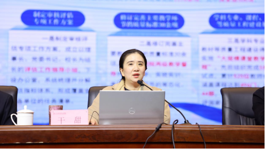 干甜常务副校长代表学校作年度工作报告,系统总结了2025年学校在党建品牌建设、审核评估迎评准备、产教融合深化、师资队伍建设、学生全面发展、办学条件改善以及校园安全稳定等方面取得的阶段性成果。着眼“十五五”时期的发展要求,对2026年学校重点改革任务作出系统部署,围绕筑牢教学质量生命线、优化学科专业结构、创新产教融合机制、推进数字化赋能转型、实施人才强校战略、提升科研工作质效等方面,明确了新一年工作重点和推进路径。