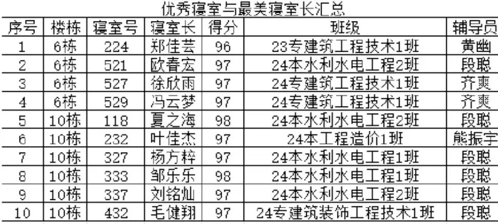 为营造一个健康、舒适、整洁的学习与生活环境,提高同学们的生活品质与自我管理能力。建筑学院举办了优秀寝室与最美寝室长评比大赛。经过激烈角逐,共有10个寝室获优秀寝室与最美寝室长称号。