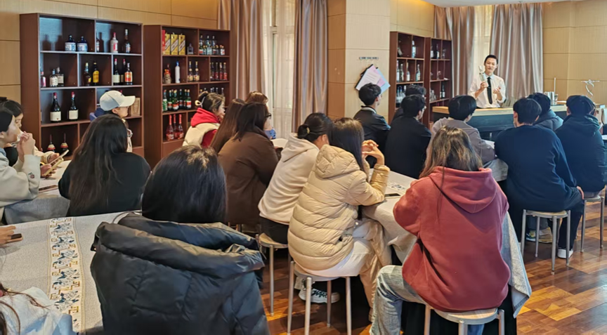 课堂之上,俞华勇先生现场调制多款鸡尾酒,细致拆解调酒原理、阐释文化内涵。他直言:“一杯好酒,30%靠技术,70%靠对客人情绪的感知。”此观点让学生们认识到职场技能不仅是技术,更是对人与情境的应对。刘宇中老师结合调制过程,围绕压力管理、团队协作等职场素养剖析引导,课堂互动热烈。魏雅姝老师以“和而不同”总结,拓宽学生职业视野。