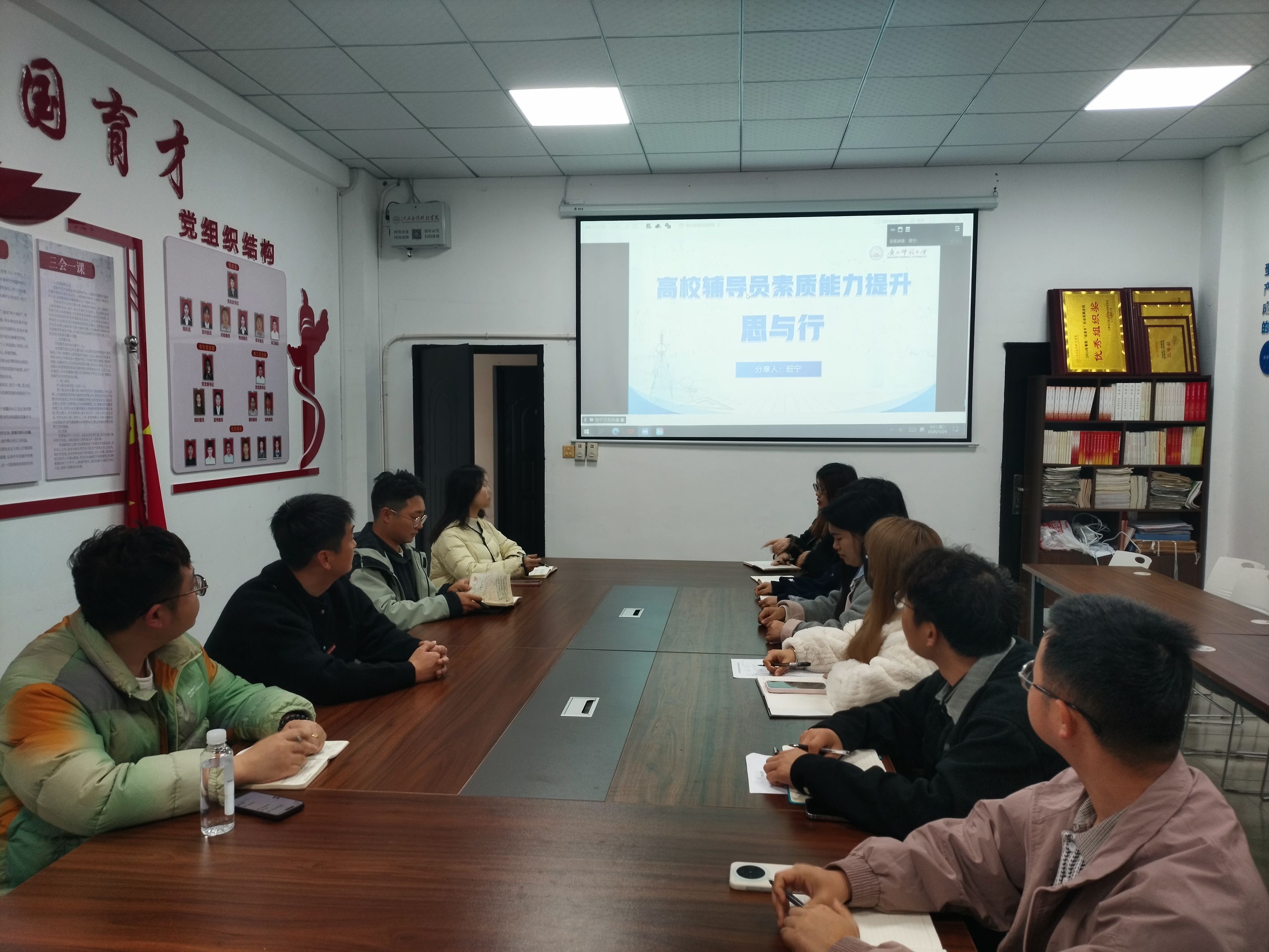 为落实立德树人根本任务,进一步加强我校辅导员队伍专业化、职业化建设,3月24日上午,2024年全国高校辅导员素质能力提升骨干训练营“十佳标兵”、广西师范大学班宁老师应邀为我校辅导员作素质能力提升专题培训。本次培训在学校各二级学院、辅导员工作室设分会场,学校全体辅导员、学工系统相关干部参加培训。