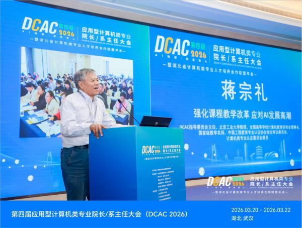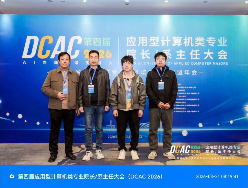 2026年3月20日至22日,由全国高等学校计算机教育研究会主办的第四届应用型计算机类专业院长/系主任大会(DCAC2026)在湖北武汉举办,未来技术学院选派胡珺、接辉、魏子腾、江浪共4名专业主任、副主任和骨干教师参会。