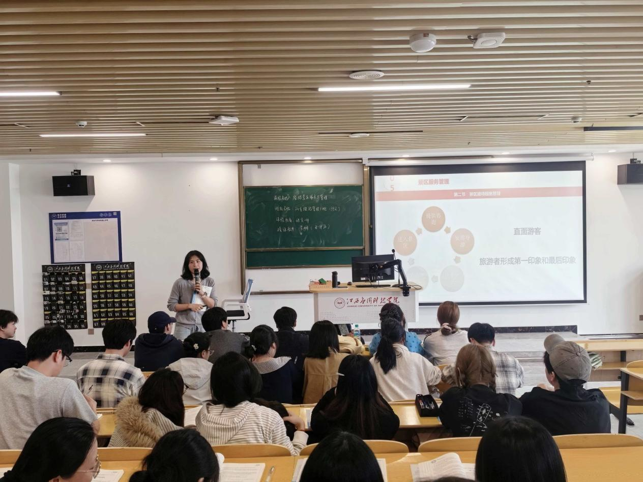 为搭建教师教学交流平台,提升课堂教学质量,促进教师专业成长,4月7日下午,经济管理学院在三元大厦阶梯七教室成功开展公开课教学活动。本次公开课由旅游管理教研室李娴老师主讲,授课内容为《旅游景区服务与管理》课程的“景区服务管理”,24专旅游管理1班全体同学及学院全体专任教师到场参与观摩学习。