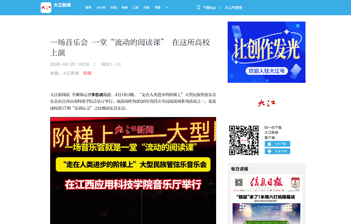 上一条:【江西广播电视台都市频道】【第五届全民阅读大会】南昌:线上线下齐诵《滕王阁序》 千年经典迸发时代新声 下一条:【江西教育电视台】江西应用科技学院举办大型民族管弦乐音乐会