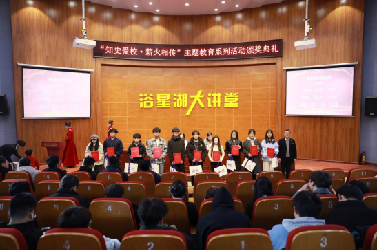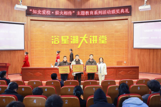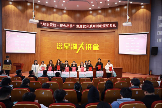 12月25日下午,江西应用科技学院在浴星湖大讲堂举行“知史爱校·薪火相传”主题教育系列活动表彰大会。常务副校长干甜,副校长张敏出席会议。各二级学院学工科长及师生代表参加,大会由徐戎主持。