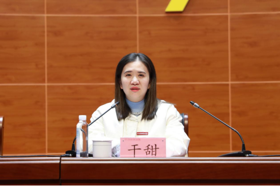 会上,干甜首先对各位获奖师生表示衷心祝贺。她提出今年是四十周年校庆,而历史是文化和精神的永远寄托,是薪火相传、继往开来的不竭动力。这次活动不仅是一次知识的竞赛,更是一次精神的传承。同时,干甜提到优秀校友母永奇,他在2022年获得“大国工匠”年度人物,至今仍在一线不断奋斗,希望全校学生向母永奇学习,不断进取。最后,干甜希望各位同学可以好好珍惜这份荣誉,积极参与各类教育活动中,将应科精神发扬光大,以多样化的形式推动校史的延续、文脉的传承。