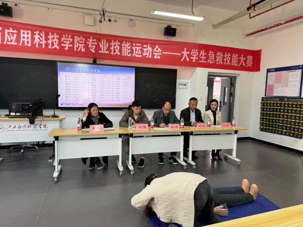 2023年11月16日下午,由现代管理学院健康服务与管理教研室承办的“辰林杯”第十四届江西应用科技学院专业技能运动会——大学生急救技能大赛决赛在劲松楼104教室举行。